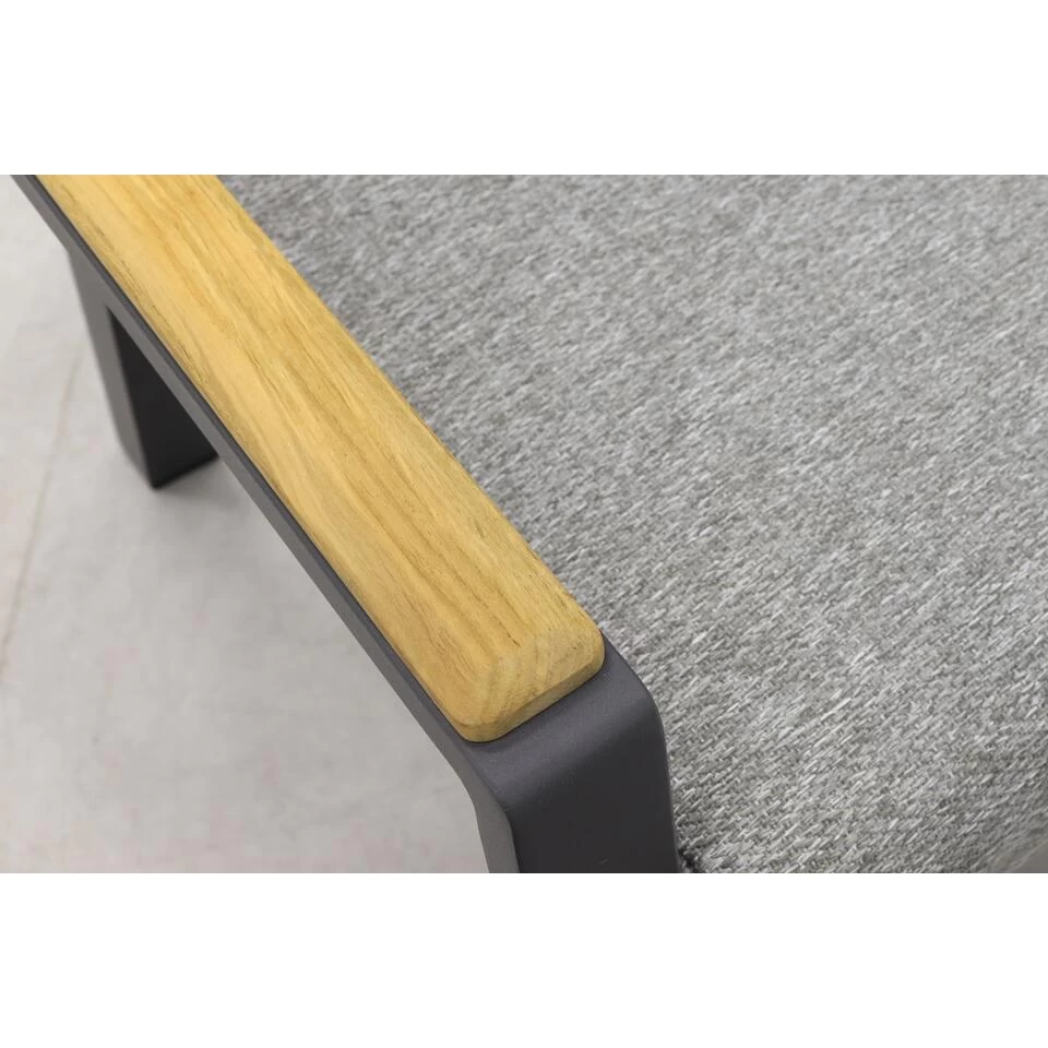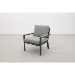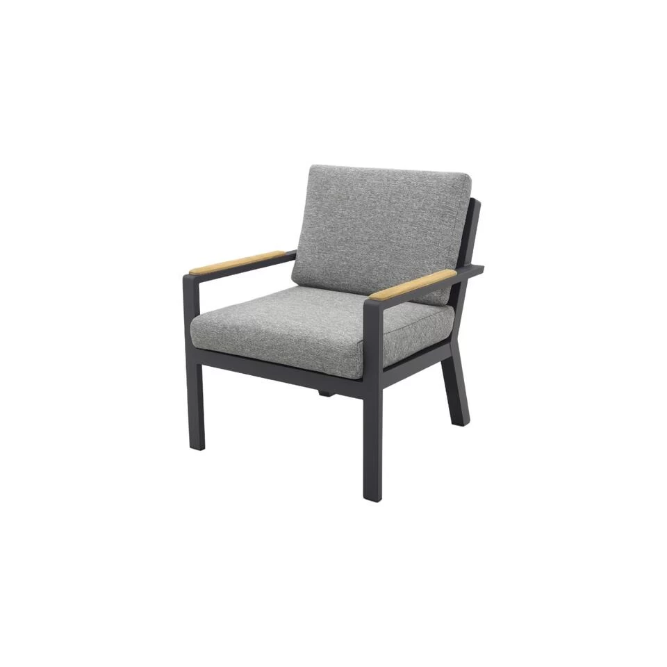 Ontspannen en dineren tegelijkertijd, met de Proton low dining tuinstoel van 4 Seasons kan het! De Proton serie is het beste van twee werelden. Het frame van aluminium heeft een kubistische vorm, samen met de teakhouten armleuning zorgt dit voor een eigentijdse en stoere uitstraling! Het gebruik van aluminium zorgt ervoor dat deze tuinstoel licht van gewicht is, lang mee gaat en niet kan gaan roesten. De teakhouten armleggers hebben nu een warme kleur, maar zullen door de weersinvloeden nog vergrijzen. Je kunt de originele kleur langer behouden door een teak protector te gebruiken. De zit- en rugkussens zijn weerbestendig, hierdoor hoef jij je geen zorgen te maken over een aankomend buitje. Mocht je eventueel drinken gemorst hebben, zijn de kussenhoezen eenvoudig uit te wassen op 30 graden.