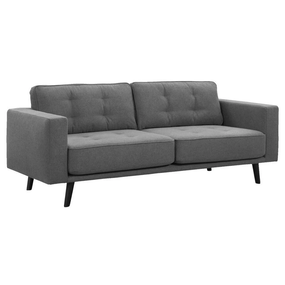 De kleur grijs is makkelijk te combineren en door de brede armleuningen heeft deze bank een hoog zitcomfort.