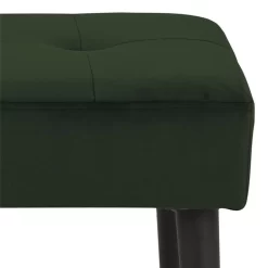 Bankje Gaby is bekleed met meubelstof Vic in de kleur groen en heeft een afmeting van 45x95x38 cm. Dit bankje is een opvallende verschijning! Het zitkussen is gecapitonneerd en de slanke, zwarte pootjes zijn zwart van kleur. Het bankje is praktisch in gebruik. Zo schuif je het bankje makkelijk aan als je onverwachts visite over de vloer hebt.
