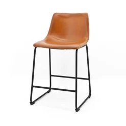 Barstoel Cognac – Metaal & PU Leer – Zithoogte 65cm – Barstoel Logan Cognac –