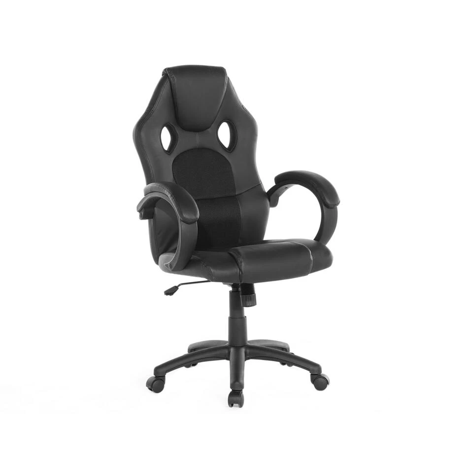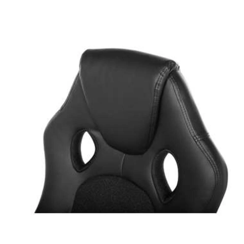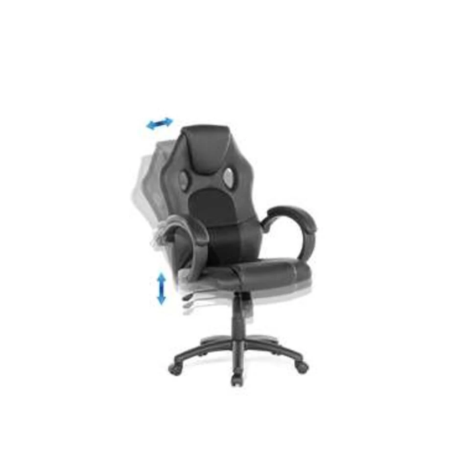 Sportieve bureaustoel met mesh-stof. Comfortabele bureaustoel van kunstleer gecombineerd met luchtdoorlatend gaas. De zithoogte is verstelbaar met een pneumatische gaslift. De gestoffeerde en aangepaste armleuningen ondersteunen een juiste en ontspannen lichaamshouding. De rugleuning is ontworpen met een ergonomische hoofdsteun. Het kantelmechanisme zorgt voor ontspanning van de ruggengraat en een goede bewegingsvrijheid.