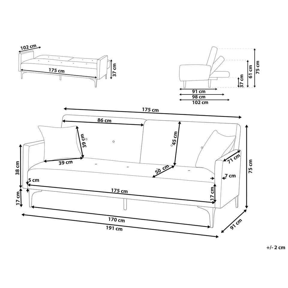 Belangrijkste eigenschappen: Zeer gemakkelijk te veranderen in een bed, Rugleuning verstelbaar in 3 posities, Traditioneel design met een moderne twist, Hoogwaardige kwaliteit stoffering, Verwijderbare kussenhoezen, Beschermdoppen voor oppervlaktebescherming