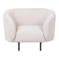 Klassieke art deco zetel. Deze prachtige fauteuil straalt een luxe gevoel uit, van de zwarte poten tot de zachte rondingen van het gestoffeerde silhouet. De stof ziet en voelt aangenaam zacht en pluizig aan, wat een uitnodigende uitstraling aan de ruimte geeft. De dik beklede zitting biedt een comfortabele zitplaats, waardoor het de perfecte plek is om te lezen of ’s avonds laat te genieten van tv. Het zachte ontwerp van de zetel zal perfect passen bij interieurs in eclectische, traditionele of mid century stijl.