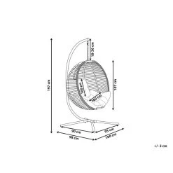 Hangstoel met een zitkussen. Deze hangende eierstoel biedt dankzij de zachte schommelbeweging een comfortabele plek voor iedereen die wat vrije tijd nodig heeft. De stevige standaard is gemaakt van robuust metaal dat de stabiliteit van het stuk en de lange levensduur garandeert. De zitting is geweven met polyesterdraad en zorgt in combinatie met het meegeleverde donzige zitkussen voor een gevoel van gezelligheid. Bovendien heeft dit meubel, dankzij de toepassing van een thermische spuitafwerking, een weerstand waardoor het niet alleen binnen maar ook buiten kan worden gebruikt.