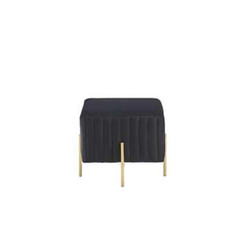 Zwarte poef met stevige metalen poten. Een stijlvolle combinatie van klassiek design en kwaliteitsproductie – deze zwarte poef met stevige metalen poten is een must-have voor elke woonruimte. Het past perfect bij veel interieurs en kan worden gebruikt als extra zitplaats of als decoratief meubel. Deze poef is tegelijkertijd betoverend vanwege het bijzondere, chique design en praktisch door het makkelijke onderhoud.