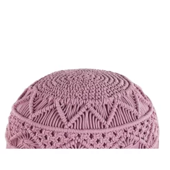 Schattige gebreide poef. Esthetisch charmant en tegelijkertijd heel praktisch. Met deze leuke boho – poef in stijlvolle roze is dit heel goed mogelijk. Dankzij het decoratieve breiwerk en de aandacht voor detail draagt deze poef bij aan extra sfeer in iedere woonruimte. Je kunt deze poef als alleenstaand meubelstuk of decoratie item gebruiken, maar ook kiezen voor meerdere, bijvoorbeeld in verschillende kleuren.