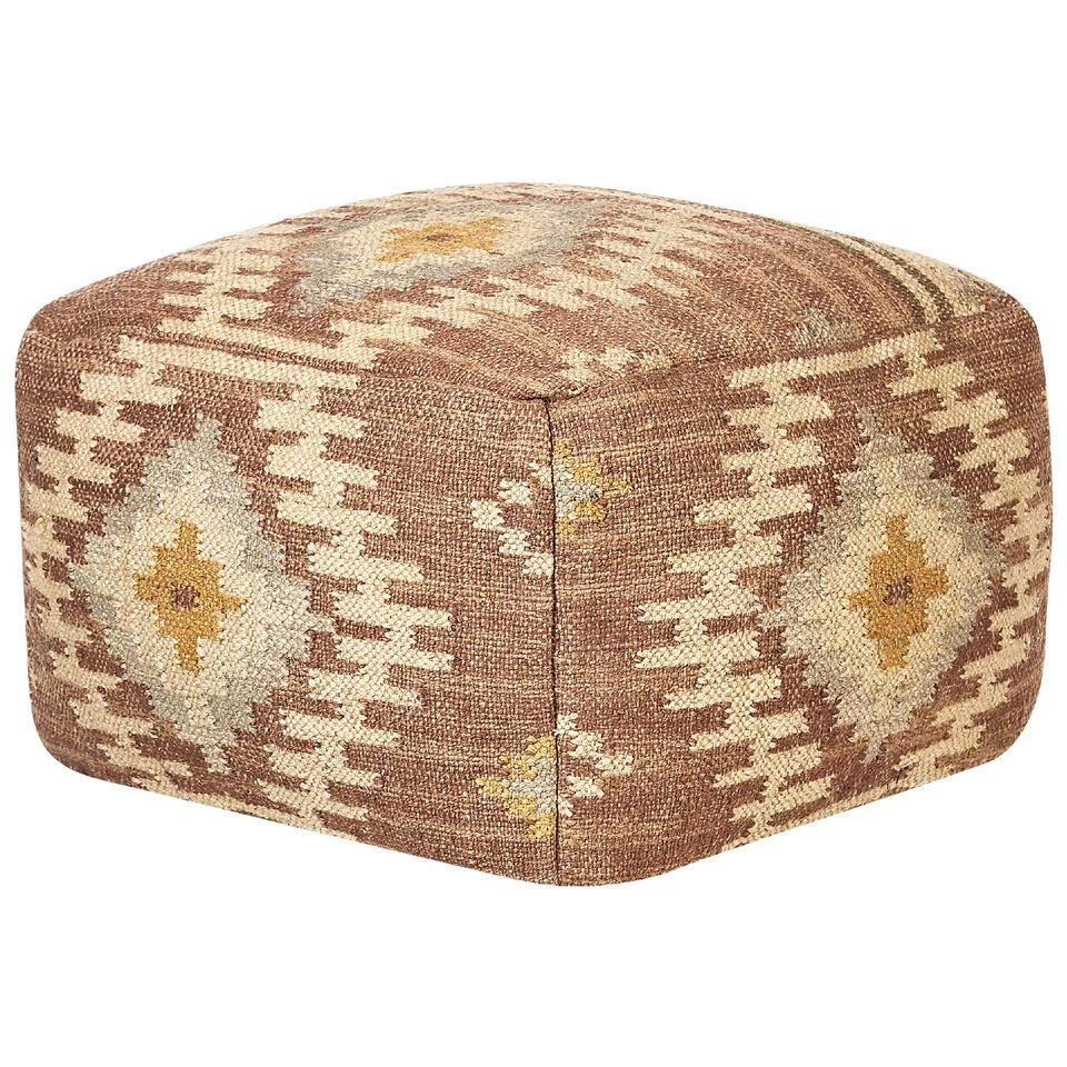 Geweven vierkante poef. Geef je interieur een uniek gevoel met speciale accessoires die dankzij hun uitzonderlijke design elke ruimte opvrolijken. Deze poef is gemaakt van hoogwaardige natuurlijke materialen met behulp van een traditionele hindoeïstische weeftechniek genaamd panja. Dit stuk in kilimstijl kan ook handig zijn wanneer je een extra zitplaats of een voetenbankje nodig hebt om je na een lange dag uit te strekken.