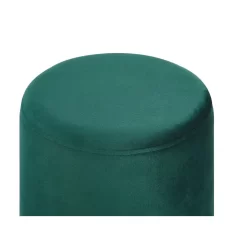 Fluwelen poef in groen. Geef je huis een vleugje glamour met deze prachtige gestoffeerde poef. De glanzende textuur van de fluwelen bekleding wordt prachtig geaccentueerd door de reflecterende metalen band. Door zijn compacte formaat past hij overal, naast de bank, in de gang of aan het hoofdeinde van het bed. Het is een perfect accessoire om een luxe gevoel aan je huis toe te voegen.