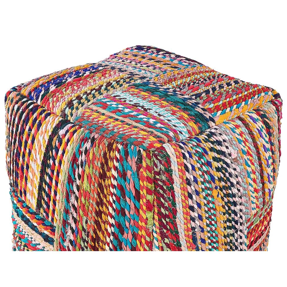 Handgemaakte vierkante boho woonkamer ottomaan. Breng kleur in je woonkamer en geef het een vrolijke, speelse uitstraling met deze stijlvolle poef. Handgemaakt van gerecycled katoen en EPS-balletjes, comfortabel en decoratief. De geweven poef is de perfecte toevoeging aan elke kinderkamer. Dankzij het unieke ontwerp, met draden in meerdere kleuren, past het goed bij elk Boho-geïnspireerd interieur.
