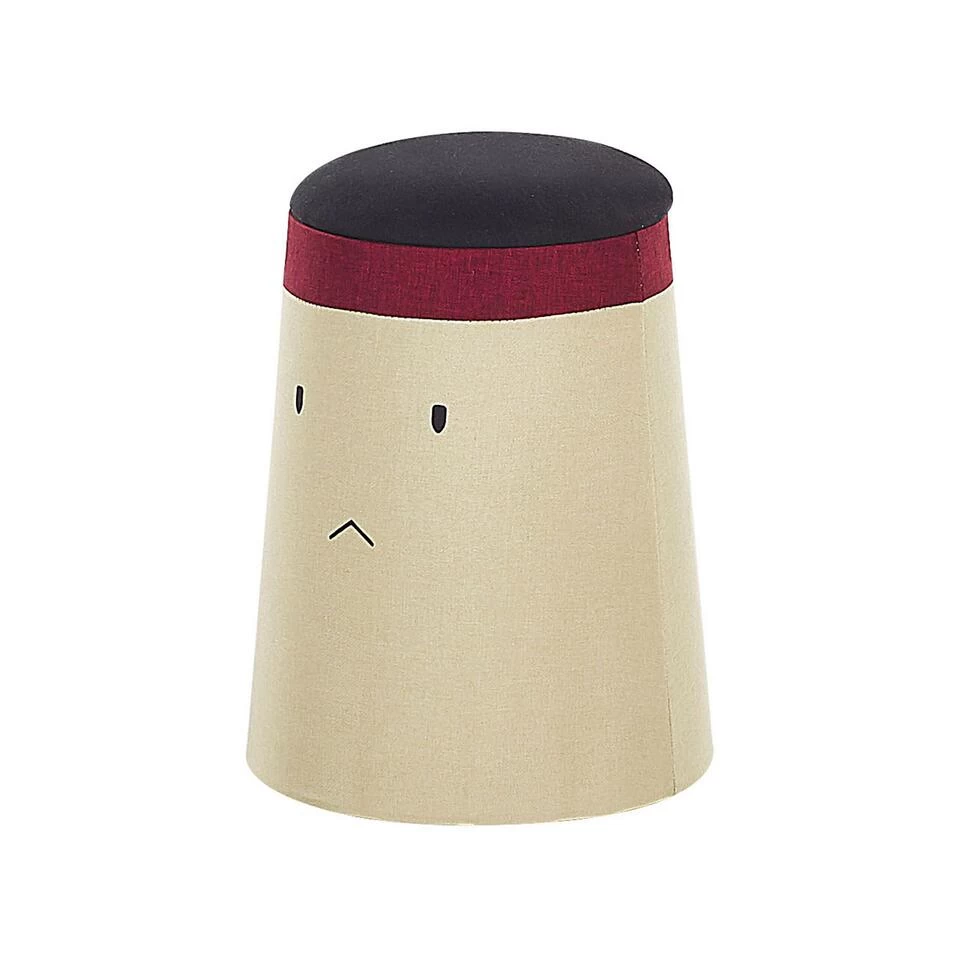 Beige poef met gezicht voor kinderen. Deze speelse poef wordt vast en zeker de nieuwe favoriete zitplek van jouw kind. Omdat de poef opbergruimte heeft is het ook een handige plek voor al het speelgoed van je kind. De poef is bedekt met zacht aanvoelend en gemakkelijk schoon te maken polyester. Het samoerai tekening op de poef moedigt kleintjes aan om te spelen en laat hun fantasie de vrije loop.