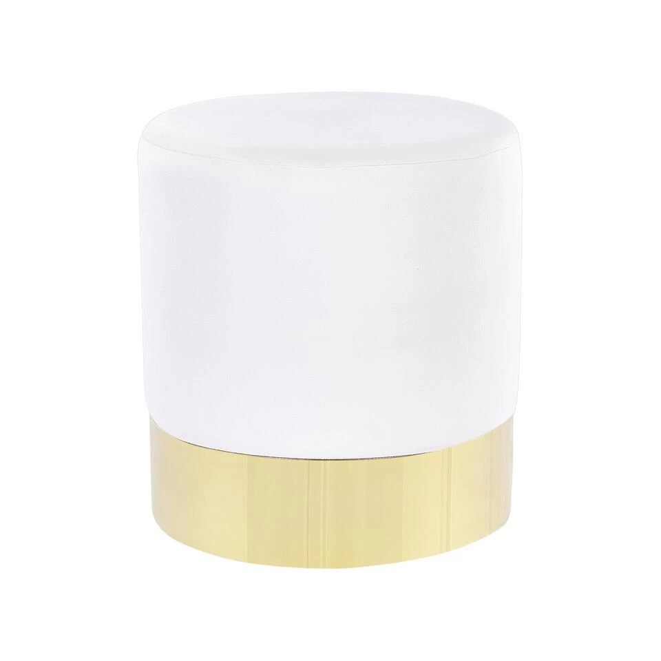 Gevoerde fluwelen poef met gouden accent. Voeg een luxe sfeer toe aan je interieur. Deze poef gemaakt van duurzame fluwelen polyesterstof in witte kleur voelt heerlijk zacht aan terwijl hij ook duurzaam en slijtvast is. De gouden voet benadrukt het moderne ontwerp en geeft het een glamoureuze uitstraling. Gebruik de poef als extra zitplaats of als voetenbankje en decoreer je ruimte met dit accentstuk.