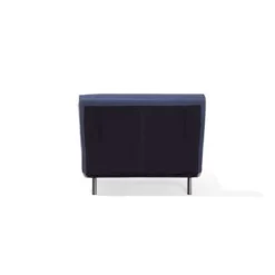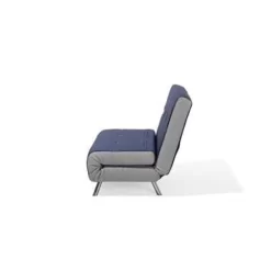 Praktische en comfortabele slaapbank in blauw. Deze compacte bank past in elke kleine woonruimte en zorgt voor een comfortabele zit of slaapplek. Hij is ontworpen met een verstelbare rugleuning en twee opbouw mechanismes zodat hij gemakkelijk in een bed kan worden veranderd. De stalen, zilveren poten accentueren de moderne look. Dankzij de duurzame stoffering met contrasterende kleuren en decoratieve knopen past de bank in elke moderne setting. De rugkussens hebben een afneembare hoes waardoor hij gemakkelijk schoon te maken is.