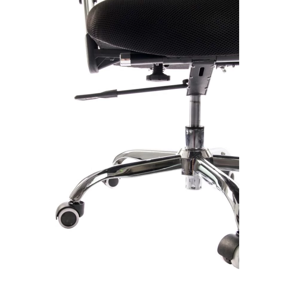 Met een zitdiepte van 48,5 cm en een zitting die rond afloopt, drukt de zitting niet in je knieholten. De armleuningen zijn niet alleen in hoogte verstelbaar, middels de schroeven aan de onderzijde van de zitting kun je de breedte, tijdens montage, ook enkele centimeters aanpassen. Tot slot is de stoel 360° draaibaar om zijn eigen as. Dit maakt de Ergo een uiterst geschikte kantoorstoel.
