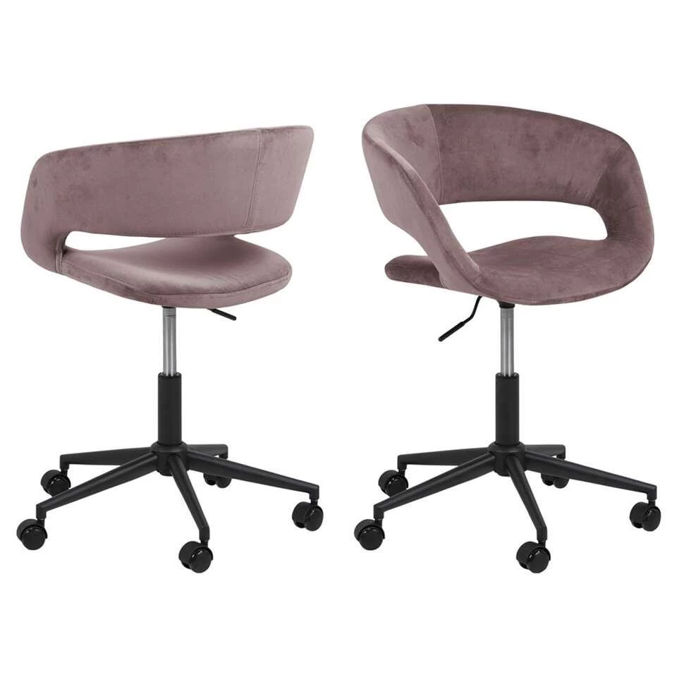 Deze bureaustoel Gizem heeft een moderne en trendy look. Het leuke kuipstoeltje is bekleed met zacht fluweel in de kleur poeder roze. De stoel heeft een comfortabele zit. is in hoogte verstelbaar en is verrijdbaar.