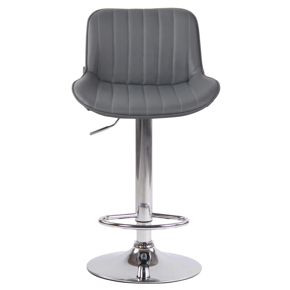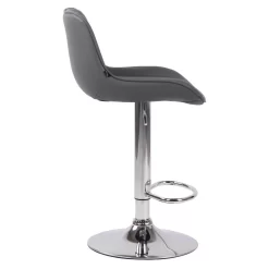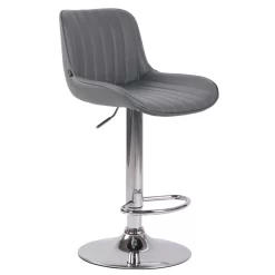 Deze barkruk geeft elke ruimte een exclusieve uitstraling en overtuigt niet alleen door zijn uitstekende ziteigenschappen, maar ook door zijn moderne design. De zitting is bekleed met onderhoudsvriendelijk kunstleer. Met behulp van de gasveer kan dit model traploos op de gewenste hoogte worden ingesteld, zodat het ideaal geschikt is voor elke aanrechthoogte. De voetsteun, die voor een zeer goed zitcomfort zorgt, kan synchroon met de hoogte van de zitting worden versteld. De zitting kan samen met de voetsteun 360° gedraaid worden. Het frame is naar keuze gemaakt van metaal in chroom-look, wit of zwart metaal. Bovendien zitten er vloerbeschermers onder de trompetvoet om te voorkomen dat er krassen op de vloer komen.