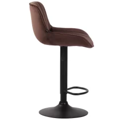 Deze barkruk geeft elke ruimte een exclusieve uitstraling en overtuigt niet alleen door zijn uitstekende ziteigenschappen, maar ook door zijn moderne design. De zitting is bekleed met een gemakkelijk te onderhouden fluwelen hoes. Met behulp van de gasveer kan dit model traploos op de gewenste hoogte worden ingesteld, zodat het ideaal geschikt is voor elke aanrechthoogte. De voetsteun, die voor een zeer goed zitcomfort zorgt, kan synchroon met de hoogte van de zitting worden versteld. De zitting kan samen met de voetsteun 360° gedraaid worden. Het frame is naar keuze gemaakt van metaal in chroomlook, wit of zwart metaal. Bovendien zitten er vloerbeschermers onder de trompetvoet om te voorkomen dat er krassen op de vloer komen.