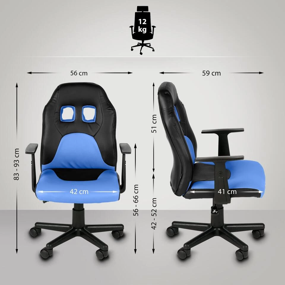 Deze hoogwaardige bureaustoel met sportief design is het juiste voor uw kind ! De onderhoudsvriendelijke kunstleren bekleding oogt niet enkel mooi, zij is vooral heel duurzaam en makkelijk schoon te maken. Het onderstel uit robuuste kunststof geeft de stoel de nodige stabiliteit. Vijf zwenkwielen laten de stoel vlot rollen, zowel op zachte als op harde ondergrond. De zithoogte is traploos verstelbaar en kan aan iedere lichaamsgrootte aangepast worden.