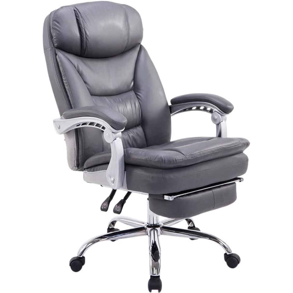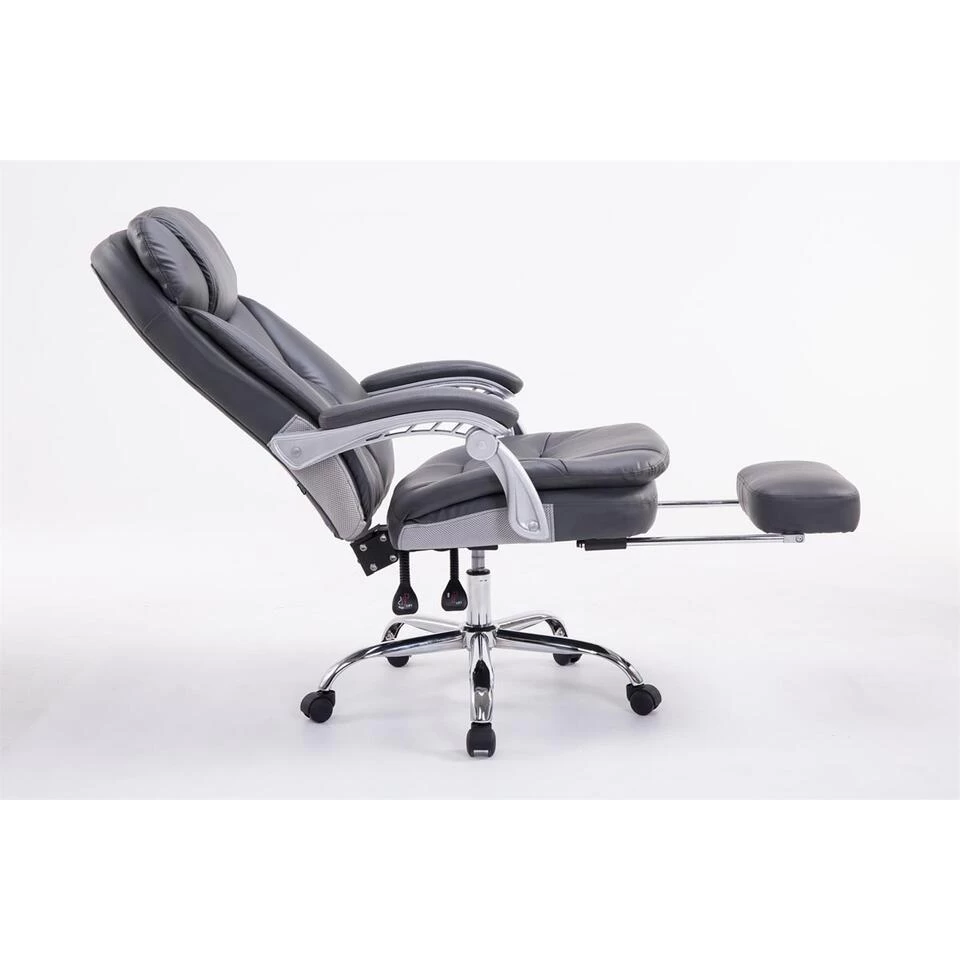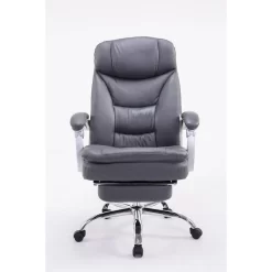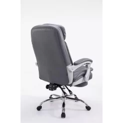 De XL bureaustoel TROY voorspelt comfort met een robuuste look, want hij is vooral voor grote en zwaardere personen ideaal. Zijn kwalitatieve stoffering en onderhoudsvriendelijke kunstleren bekleding zorgen voor een langdurig en ontspannen zitcomfort. De makkelijk verstelbare voetsteun en rugleuning nodigen gewoon tot een ontspannende pauze uit, leun lekker achterover en leg je benen hoog. Met de traploos verstelbare zithoogte ondersteunt de XL bureaustoel TROY ook altijd een ergonomische zitpositie. Bovendien staat hij stevig op vijf zwenkwielen en een onderstel uit metaal in chroomoptiek.