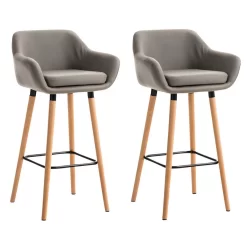 De barkruk Grant geeft elke bar iets extra s, ontworpen als een fauteuil, deze stoel valt op met zijn uiterlijk. Dankzij de rugleuning en de vorm is het ook mogelijk om meerdere uren comfortabel te zitten. De stoel met kunstleer bekleding en afneembare kussen is gemakkelijk te reinigen. Het klittenband zorgt dat de zitting op zijn plaats blijft. Bovendien kan de hoes van het zitkussen gemakkelijk worden verwijderd en dankzij de ritssluiting gewassen worden. Het stabiele vierpotige frame van beukenhout is voorzien van een discrete metalen voetsteun en maakt de vormgeving van de kruk af.