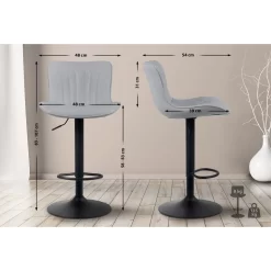 Tegelijkertijd scoren deze barkrukken punten met een hoog zitcomfort. De zittingen zijn aangenaam gestoffeerd en ontlasten de onderrug. De voeten kunnen op de voetsteunen worden geplaatst. Dankzij de gasveer kan de zithoogte traploos en snel worden ingesteld. De barkrukken kunnen lasten tot 135 kilogram probleemloos dragen.