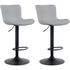 Tegelijkertijd scoren deze barkrukken punten met een hoog zitcomfort. De zittingen zijn aangenaam gestoffeerd en ontlasten de onderrug. De voeten kunnen op de voetsteunen worden geplaatst. Dankzij de gasveer kan de zithoogte traploos en snel worden ingesteld. De barkrukken kunnen lasten tot 135 kilogram probleemloos dragen.