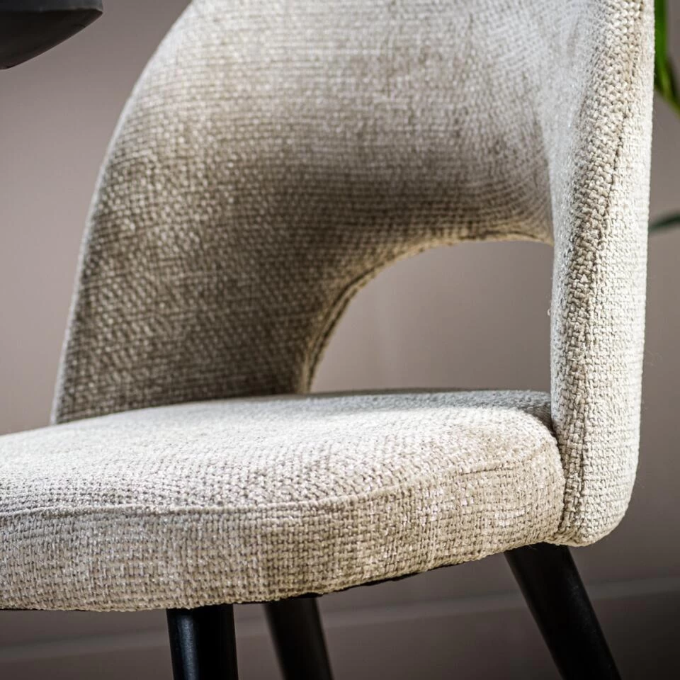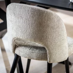 Devin eetkamerstoel is een prachtige toevoeging aan elke eetkamer. Met zijn volledige bekleding van hoogwaardige stof voelt deze stoel heerlijk aan. De zwarte poten van de stoel matchen mooi met de natuurlijke kleur van de bekleding, wat zorgt voor een elegante combinatie. De rugleuning van de Devin eetkamerstoel heeft een mooie ronde afwerking, ook zit er een opening in de achterkant van de rugleuning wat het een slank uiterlijk creëert. Maar het is niet alleen het uiterlijk dat telt, door de goede opvulling van de stoel, de zachte stof en de goed gevormde rugleuning zit de stoel ook nog eens geweldig comfortabel. Het moderne ontwerp van de Devin eetkamerstoel maakt hem een perfecte aanvulling op elk interieur. De stoel is onderdeel van het woonmerk Vurna. Devin is verkrijgbaar in teddy stof antraciet of naturel en stof naturel of bruin. Koop hem per set van twee stuks. De prijs wordt altijd weergegeven per stuk.