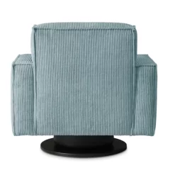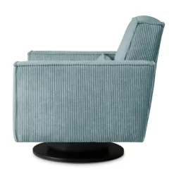 Draaifauteuil Stuttgart met armleuningen is bekleed met een stoere ribstof in trendy ijsblauw, een kleur die neigt naar het grijs. Draaifauteuil Stuttgart heeft een zeer hoog zitcomfort en is een echte aanwinst voor je interieur. Houd jij van moderne meubelen met een stoere en eigentijdse vormgeving? Dan is deze fauteuil echt wat voor jou. Hij is zeer comfortabel en dankzij zijn eenvoudige design ook heel veelzijdig. De Stuttgart is ook verkrijgbaar als draaifauteuil zonder armleuningen, hoekbank en twee- of driezitsbank. De bekleding is sterk en slijtvast. Je hebt dus vele jaren plezier van dit, in Nederland vervaardigde meubel.