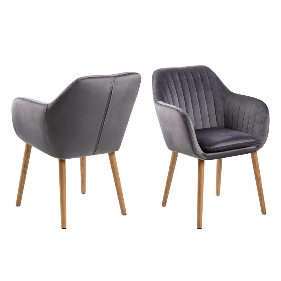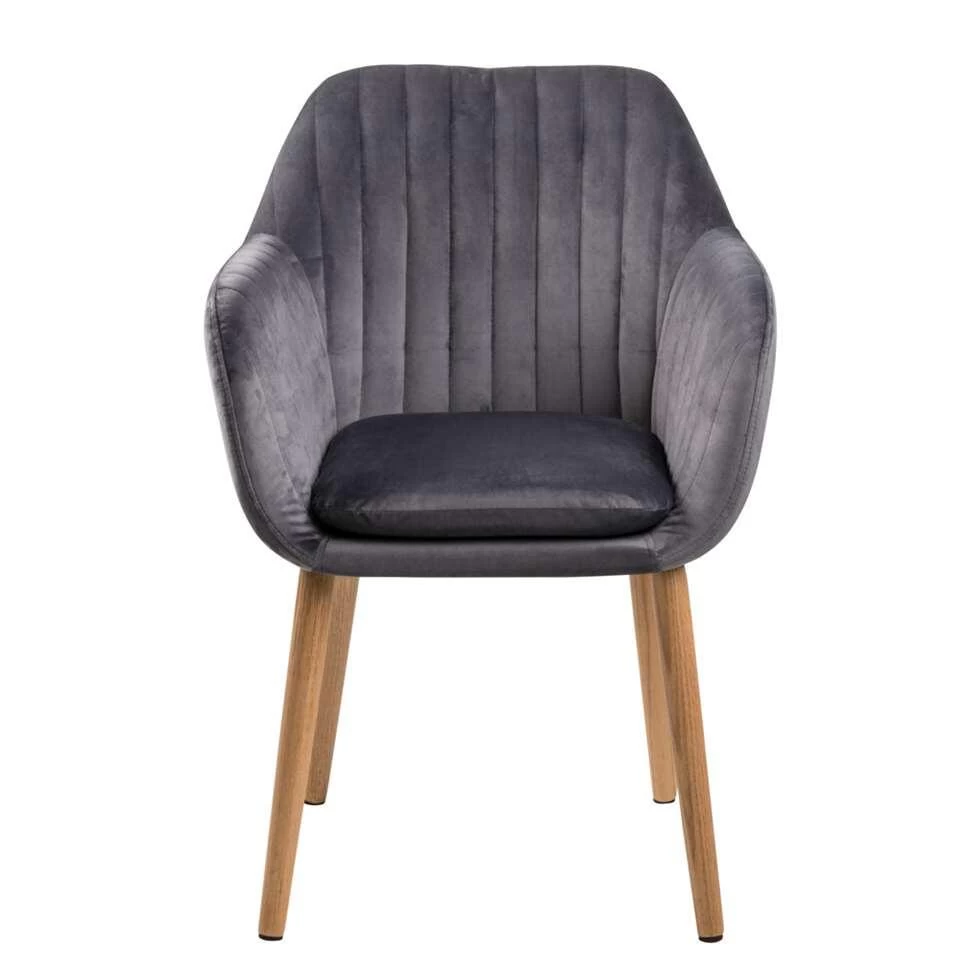 Eetkamerstoel Meda is een moderne grijskleurige stoel met een Scandinavisch uiterlijk. Deze stoel heeft slanke houten pootjes en zit erg comfortabel.