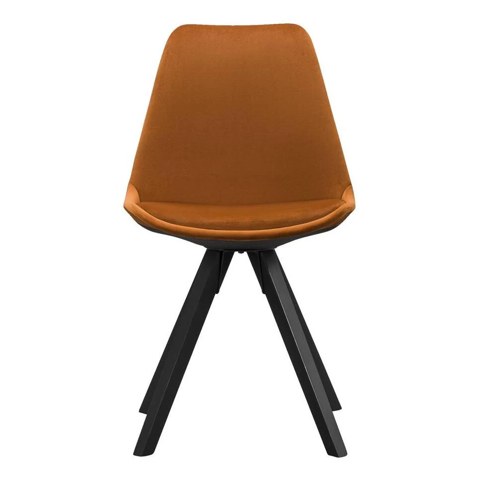Eetkamerstoel Senja heeft een velvet bekleding in een terra kleur en heeft een onderstel van zwart hout. Eetkamerstoel Senja heeft een moderne look. Deze trendy kuipstoel wordt gekenmerkt door eenvoudige maar praktische vormgeving. Deze kuipstoel heeft alles wat je van een modern stoeltje mag verwachten. Stevige houten poten met een industriële look en een velvet kuipje met een fijn zitcomfort.