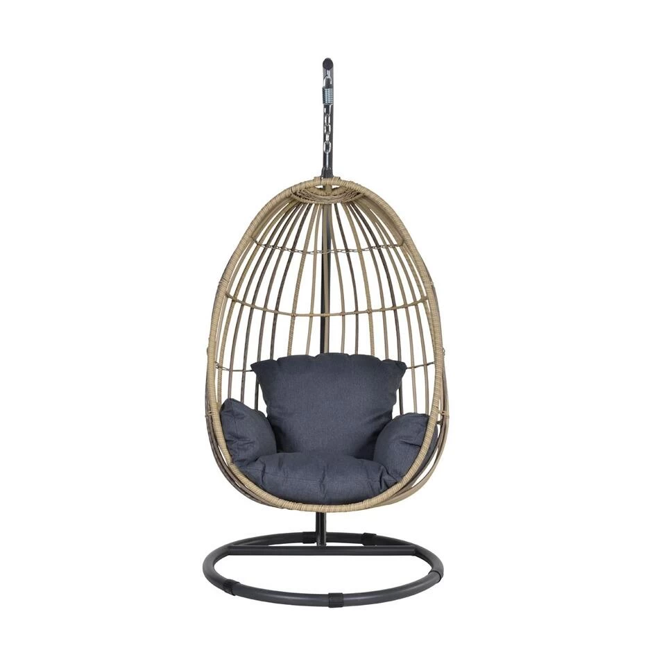 Door het comfortabele kussen geniet je gegarandeerd van lang zitcomfort. De eistoel is gemaakt van aluminium met weerbestendig wicker. De stoel wordt bevestigd aan het meegeleverde stevig stalen frame voor voldoende stabiliteit. Kies ook voor design in je tuin en relax heerlijk in deze opvallende hangstoel. Ook geschikt voor binnenshuis als opvallende blikvanger!
