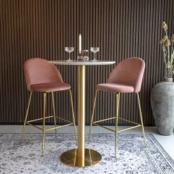 Giga Meubel Barstoel Velvet Roze Brass – Zithoogte 77cm