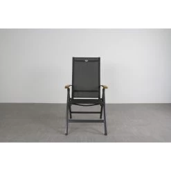 De Napoli tuinstoel van het bekende tuinmeubelmerk Hartman heeft een aluminium frame en een houten armleuning. Tussen het frame is een textileen doek gespannen. Dit doek zorgt ervoor dat de erg lekker zit. De stoel is verstelbaar zodat deze een goed zitcomfort biedt.
