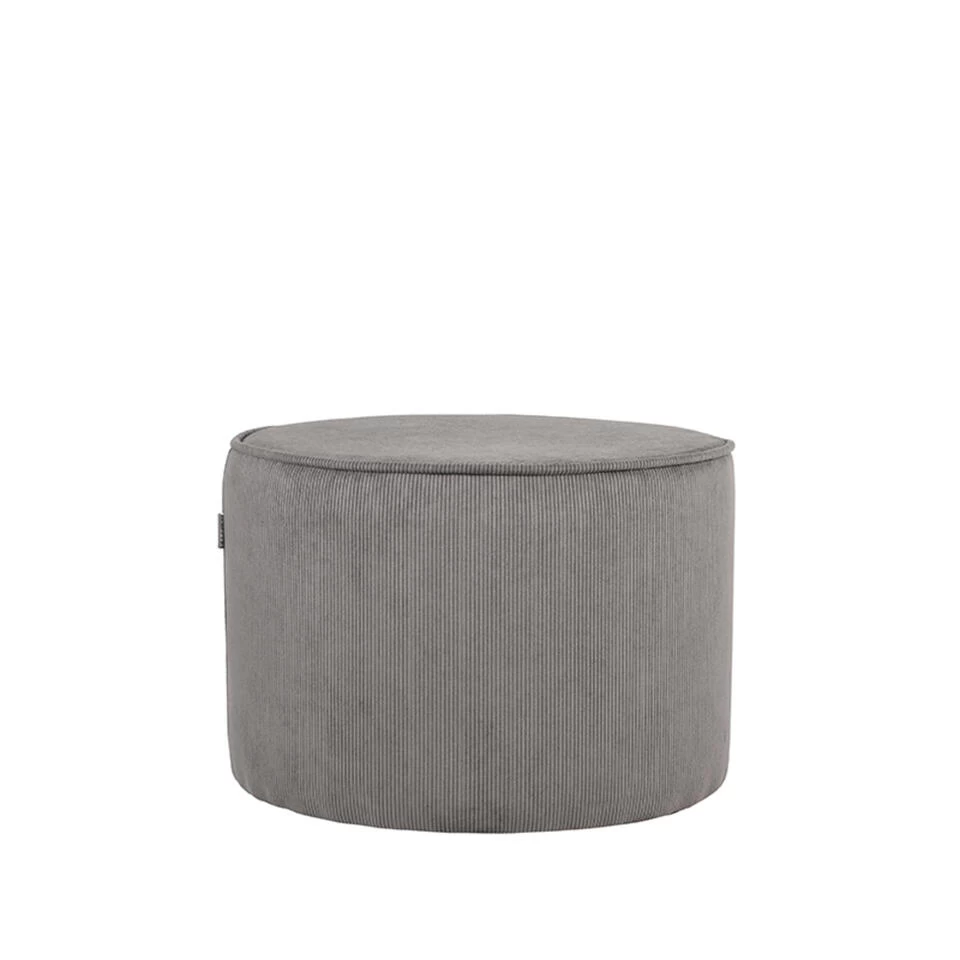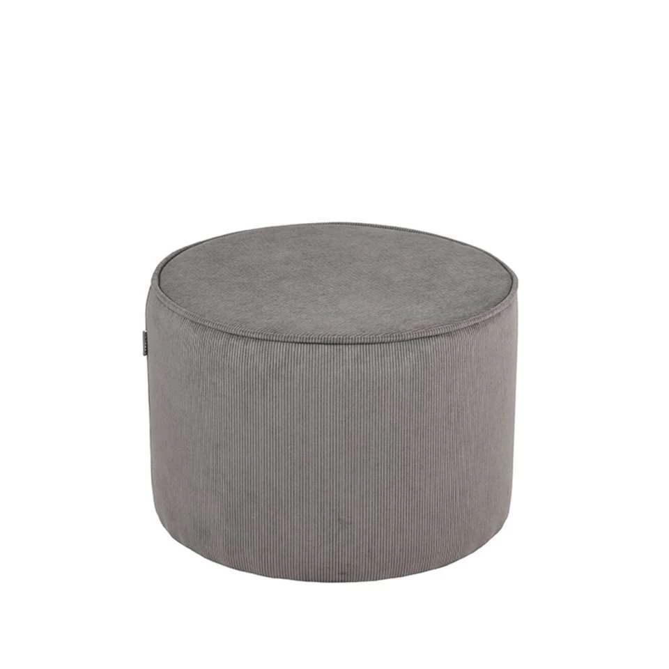 Poef Tibo is een prachtige ronde poef uitgevoerd in donkergrijs ribcord. De robuuste opzet zorgt voor bepaalde stevigheid en zorgt ervoor dat je er lekker op kunt zitten, de poef kunt gebruiken als bijzettafel of voetenbankje. Tibo is voorzien van plastic vloerbeschermers.