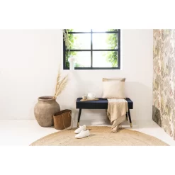 Bankje Barcelona Barcelona is een bank bestaande uit een fluwelen vulling en massief houten poten. De bank is verkrijgbaar in 2 verschillende kleuren: helderblauw en intens grijs, met gouden details op de poten. Barcelona kan voor verschillende doeleinden gebruikt worden: plaats het bankje in de slaapkamer om je kleding te ordenen, of zet het bankje tegen de muur aan en plaats je schoenen eronder. Je kan er ook voor kiezen om de bank in de woonkamer of in de gang als gezellig zitje te gebruiken. Deze bank geeft plek aan 2 personen. Dankzij de fluwelen en heldere kleuren is Barcelona een meubelstuk dat je woonruimte een warme en verwelkomende sfeer geeft. Afmeting artikel: 101(l) x 42(b) x 45(h) Materiaal: hout, spons en velvet Artikel gewicht: 6.8kg Draaggewicht: 100kg Belangrijk Niet op de sofa staan De sofa niet als opstapje of ladder gebruiken Sleep de sofa niet op een houten vloer Maximaal veilig belastbaar gewicht: 100kg