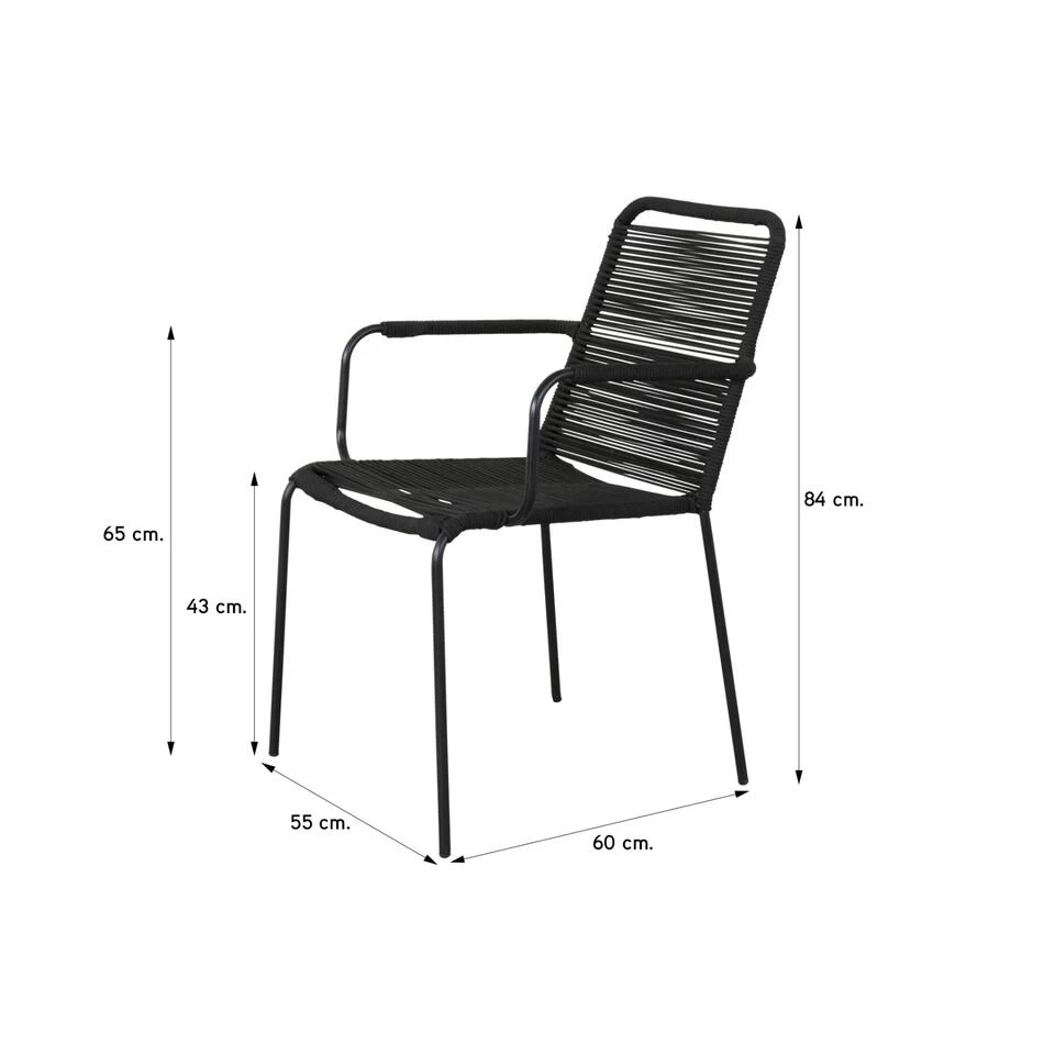 De Denver rope tuinstoel is erg trendy heeft een frisse eigentijdse uitstraling. De stoel komt zowel binnen als buiten helemaal tot zijn recht. De stoel heeft een stalen frame en is afgewerkt met Rope in de kleur zwart. Rope is een stevig kunststof nylon draad dat erg onderhoudsvriendelijk is. De stoel is stapelbaar en dus ook handig op te bergen als je de rope tuinstoel niet gebruikt.