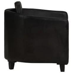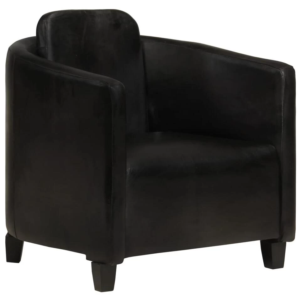 De fauteuil heeft een massief mangohouten constructie en eenvoudig schoon te maken, echt geitenleren bekleding die de stevigheid en duurzaamheid van de stoel garanderen. Dankzij de dik gevoerde armleuningen, zitting en rugleuning is het echt leren zitmeubel de perfecte plek om comfortabel op te zitten en volledig te ontspannen terwijl je tv kijkt of naar muziek luistert.