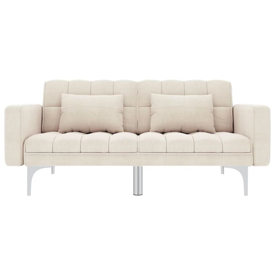 Het houten frame en de metalen poten dragen bij aan de stevigheid en de dikke voering maakt de bank extra comfortbal. Deze slaapbank kan snel en eenvoudig worden veranderd van een bank naar een bed en vice versa. Als bank kan hij in 3 verschillende standen versteld worden. De twee inbegrepen kussens zorgen voor extra zitcomfort.