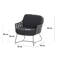 De buitenstoel, met een gepoedercoat stalen frame bedekt met rond PE-rattan, is stevig en gemakkelijk schoon te maken. De dik gevoerde zit- en rugkussens bieden extra comfort tijdens het loungen. De kussenhoes heeft een rits waardoor de hoes afneembaar en wasbaar is. Bovendien dragen de massief acaciahouten poten bij aan de stevigheid en stabiliteit. Deze tuinstoelen zijn gemakkelijk te verplaatsen door de lichtgewicht constructie.