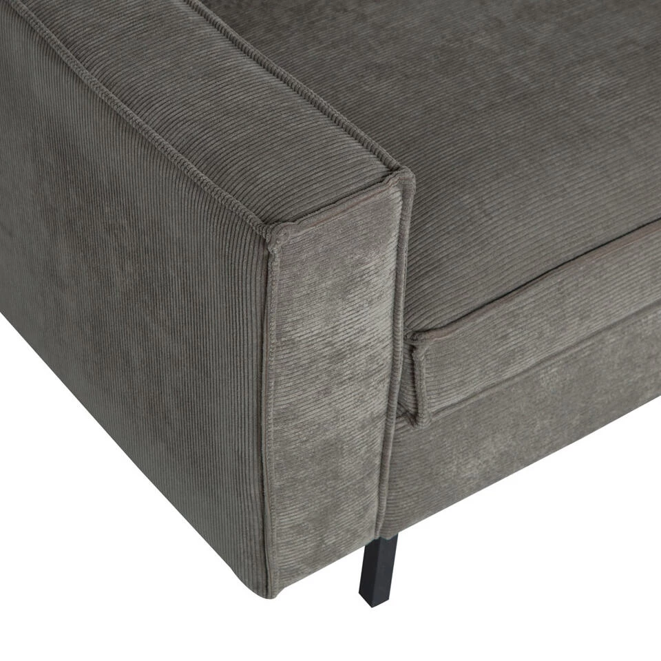 Deze bank heeft een hoogwaardige polyether vulling en is horizontaal gestoffeerd met een elegante ribstof.